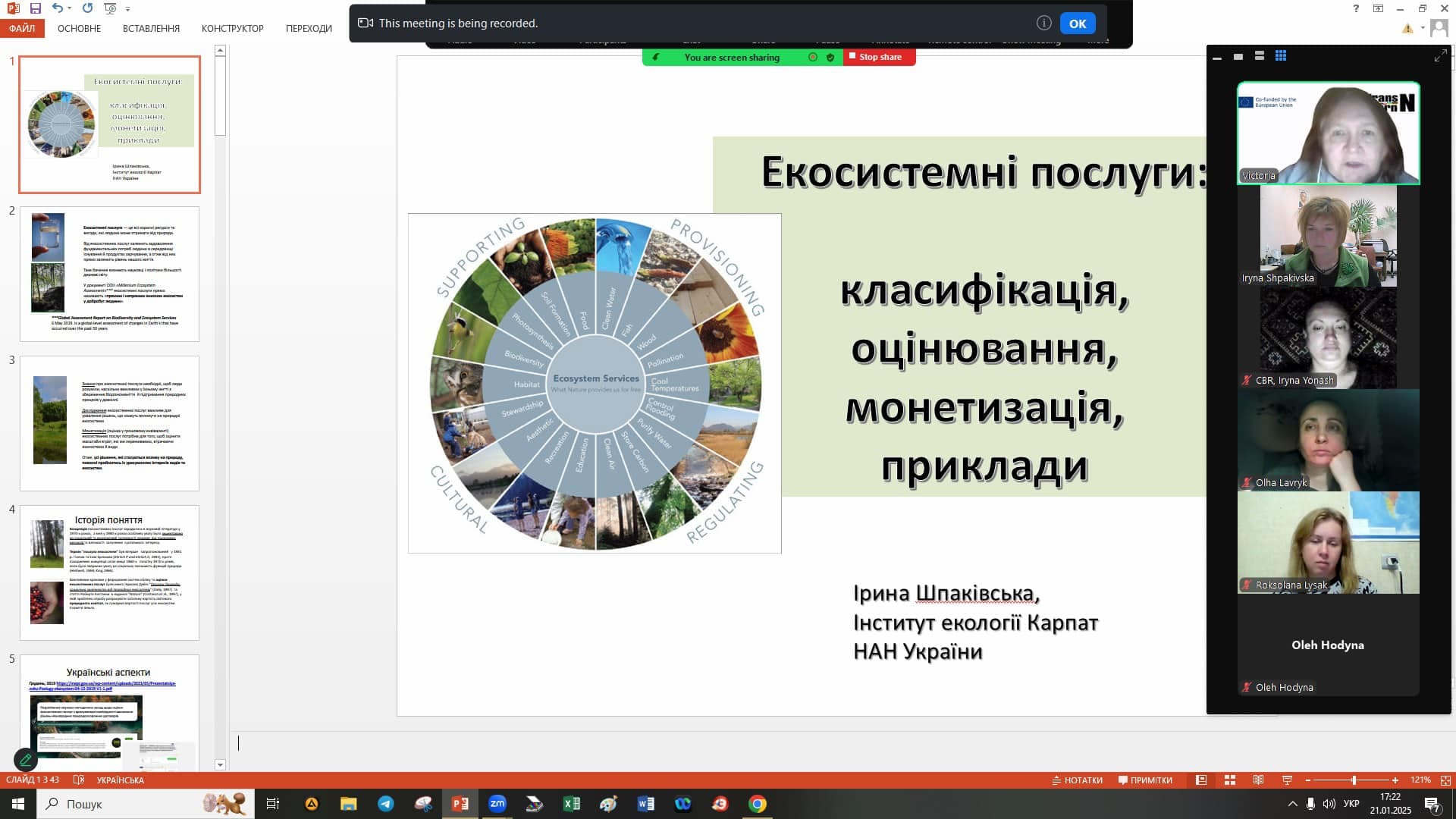 21 січня 2024 року відбулася онлайн-лекція на тему "Екосистемні послуги: класифікація, оцінювання, монетизація" / On January 21, 2024, an online lecture was held on the topic "Ecosystem services: classification, evaluation, monetization"